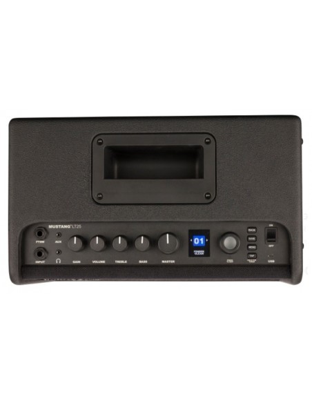 Mustang LT25 incorpora lo que Fender ha aprendido a lo largo de décadas de producir los amplificadores de guitarra con mejor sonido en el planeta. Es ideal para principiantes y estudiantes, con una interfaz de usuario súper simple y una colección de 30 ajustes preestablecidos que cubren una amplia gama de música, un "gran éxito" de los tonos de guitarra eléctrica. La versátil cadena de señales con modelos de efectos y amplificadores a bordo de alta calidad produce tonos sorprendentes, lo que la convierte en un amplificador ideal para la práctica en el hogar o la oficina.