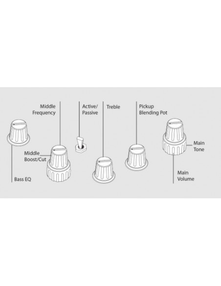 Controls : Volume / Tone(Dual Pot) | Pickup Blender | Treble | Middle / Middle Frequency (Dual Pot) | Bass, Mini Toggle(Active / Passive)