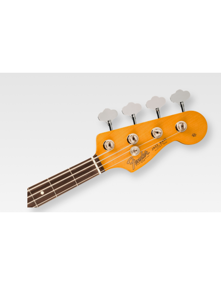 El Vintera® II '60s Jazz Bass® incorpora un cuerpo de aliso y un mástil de arce con diapasón de palisandro, ofreciendo la potencia y claridad que han definido el sonido Fender durante décadas. El mástil con perfil en “C” de principios de los 60 brinda una sensación natural y cómoda, mientras que el diapasón de radio de 7,25" con trastes altos estilo vintage asegura facilidad en los estiramientos y un vibrato expresivo. Sus pastillas de bobina simple, diseñadas al estilo de los 60, entregan un tono cálido, rico en matices y con gran dinamismo. El puente de 4 selletas y los clavijeros vintage completan el conjunto, aportando estabilidad y una estética fiel a la época.