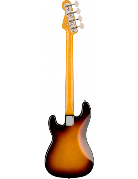 Desde finales de los 50 hasta principios de los 60 fue un período decisivo en el desarrollo del Precision Bass®, una época de transición que vería la introducción de muchas citas nuevas que se convertirían en sinónimo del P-Bass®. En 1960, el diseño del P-bass había eclipsado las señales anteriores extraídas de la Telecaster®; ahora el P-bass tenía una forma de pala estilo Strat®, contornos cómodos, electrónica montada en golpeador y puente de 4 selletas. Adornado en 3-Color Sunburst y rematado con un golpeador de carey de 4 capas, el Precision Bass de 1960 representó una estética más refinada y duradera para el modelo.