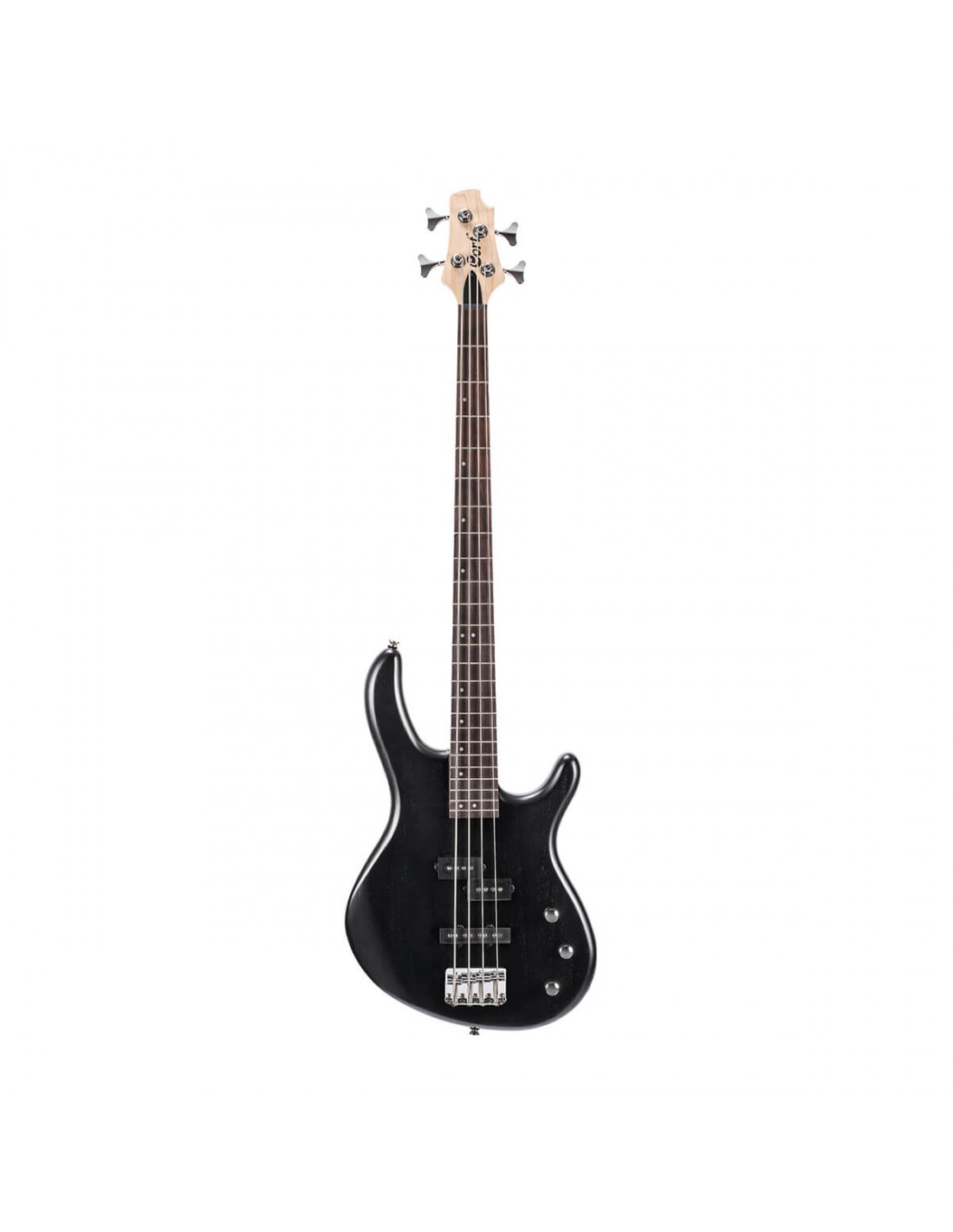 Construcción atornillable con cuerpo de álamo y mástil de arce duro. Diapasón de Jatoba con 24 trastes y escala de 34″. Equipado con pastillas versátiles Cort® Powersound PJ y electrónica de 2V/1T. Hardware cromado y disponible en acabados de poro abierto Negro y Nogal. ¡Calidad y versatilidad a tu alcance!
