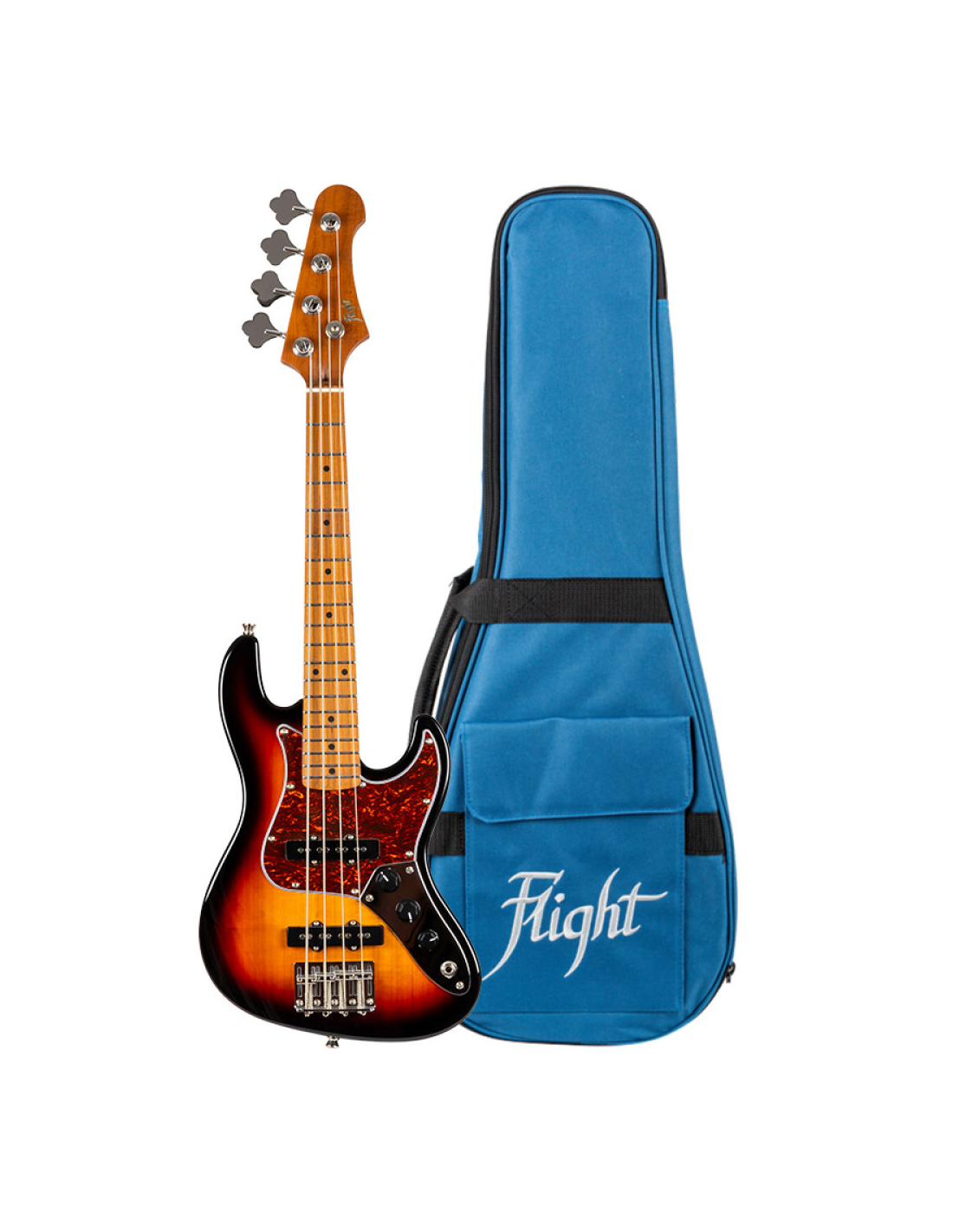 El Flight Mini JB SB Bass es un bajo eléctrico compacto con cuerpo de álamo tostado en acabado sunburst, ideal para músicos que necesitan un instrumento portátil y versátil. Su mástil y diapasón de arce tostado ofrecen durabilidad y un tono cálido. Equipado con pastillas Alnico 5 en configuración SS y controles pasivos de volumen y tono, proporciona un sonido claro y equilibrado. Incluye funda acolchada de 15 mm para su protección en viajes.