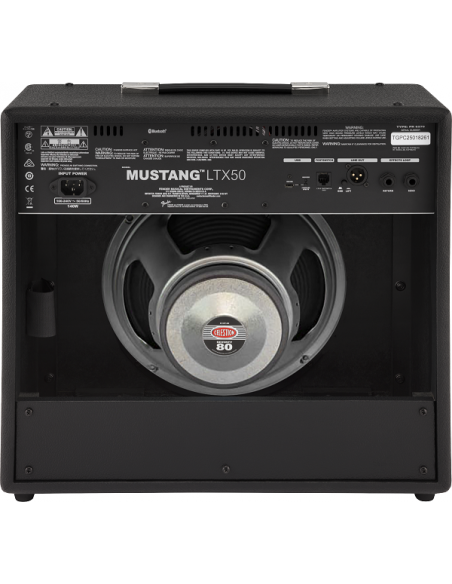 El Mustang® LTX 50 es ideal tanto para practicar como para tocar en vivo, con un altavoz Celestion® G12P-80 de 12" y la opción de un conmutador de 5 botones listo para el escenario. El Bluetooth® integrado te permite tocar sobre tus canciones favoritas y crear, editar, descargar y compartir presets con la app Fender TONE®.