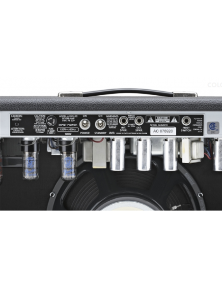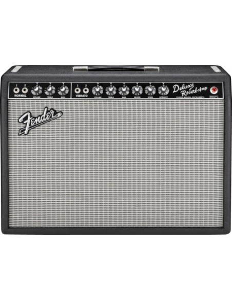 El amplificador '65 Deluxe Reverb® de 22 vatios es ideal para guitarristas de rock, country o blues que buscan un amplificador de potencia moderada que puedan utilizar en el concierto o en el estudio. Los tonos de guitarra completos y ágiles que se escuchan en muchas grabaciones famosas, desde Memphis hasta Abbey Road, se hicieron con el amplificador Deluxe™. Incluye dos válvulas de salida Groove Tubes® de 6V6, una válvula rectificadora 5AR4, cuatro válvulas de previo 12AX7, dos válvulas 12AT7, un altavoz Jensen® C-12K de 12" y 8 ohmios, dos canales (normal y vibrato), reverb Fender® a válvulas, vibrato a válvulas, pedal de dos botones para activar y desactivar la reverb y el vibrato, revestimiento de vinilo negro texturizado y rejilla plateada.