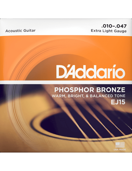 D'Addario fue el primero en utilizar Phosphor Bronze en cuerdas de guitarra acústica en 1974. Hoy en día, el Fósforo Bronce se toca en todo el mundo y se considera el estándar, gracias a su hermoso equilibrio sónico y calidez tonal. Nuestras pioneras cuerdas Phosphor Bronze para...