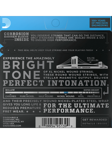 Juego de cuerdas para guitarra eléctrica D'Addario EXL110 , nickel wound