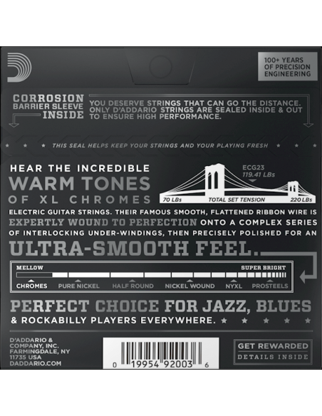 Juego de cuerdas de guitarra eléctrica. Entorchado plano. D'Addario ECG24 (11-50)