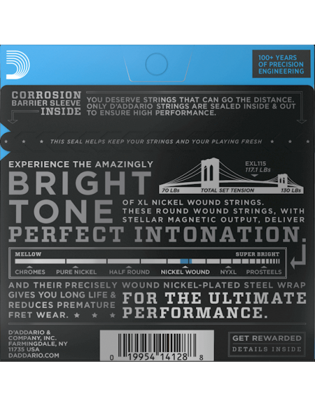 Juego de cuerdas de para guitarra eléctrica D'Addario EXL120, nickel wound