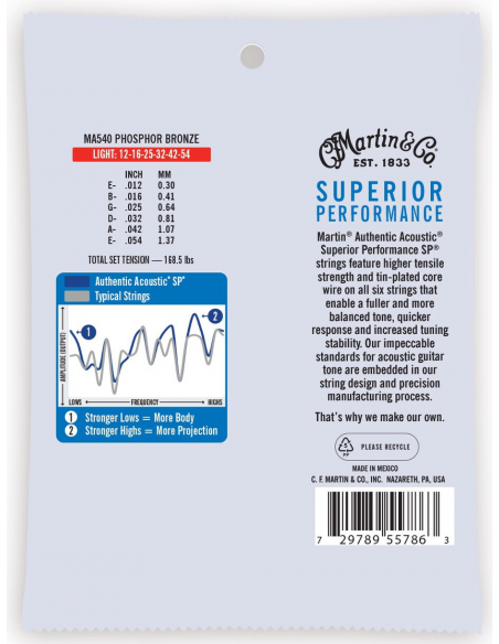 Juego de cuerdas para guitarra acústica Martin MA540T