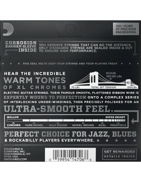 Juego de cuerdas de guitarra eléctrica. Entorchado plano. D'Addario ECG24 (11-50)