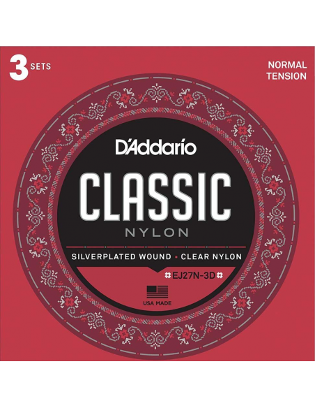 Pack de 3 Juegos de cuerdas para guitarra clásica D'Addario EJ27N Classic Tensión normal