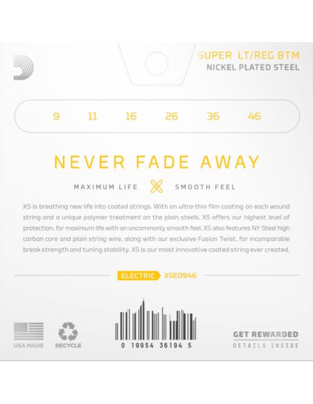 Las cuerdas de guitarra eléctrica con revestimiento de níquel proporcionan una vida más larga que cualquier otra cuerda. Recubiertas con el innovador revestimiento XS, alcanzan la máxima duración y una sensción suave y rápida sin amortiguar su excelente tono. Construidas con un...