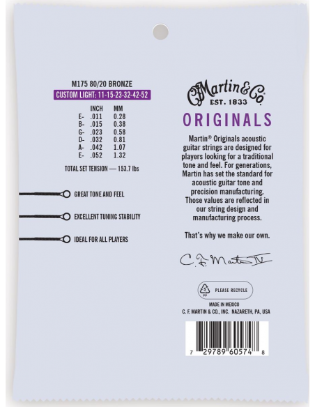 Juego de cuerdas para guitarra acústica Martin MA175S