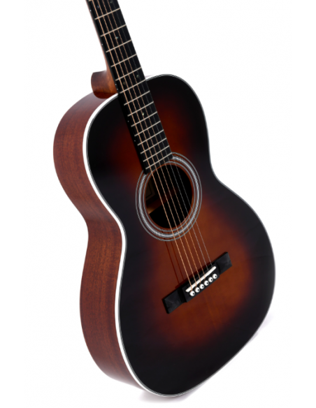 La Sigma 00M‑1S‑SB es una guitarra acústica tamaño 00, perfecta para quienes buscan comodidad, un sonido equilibrado y un instrumento versátil tanto para fingerstyle como para acompañamiento. Su tapa de abeto Sitka macizo ofrece una respuesta brillante y definida, mientras que los aros y fondo de caoba aportan calidez y un carácter clásico muy apreciado en grabación y directo.