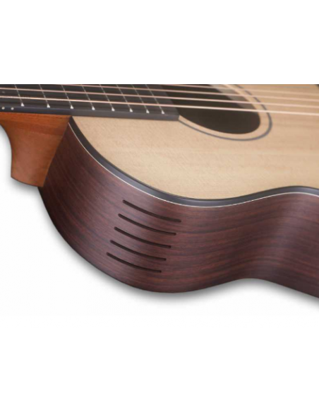 Furch Pioneer ER, guitarra acústica, tamaño de cuerpo travel, cutaway, Tapa de pícea Engelmann, fondo y aros de palosanto de India, Booster Soundport en el operside, fondo y aros de caoba maciza, mástil de caoba, diapasón y puente de ébano, ancho de cejuela 45mm, escala 615mm, acabado natural de poro abierto, incl. gig bag, Made in Europe Tschechien, hecho en europa república checaConstrucción TravelTapa de pícea Engelmann macizaCuerpo y Aros de palosanto de IndiaCutaway SíMástil ÉbanoAncho de la cejuela en mm 45,00 mmColor NaturalTrastes 18Escala 615 mmsin previo, LR Baggs EASVTC opción disponible