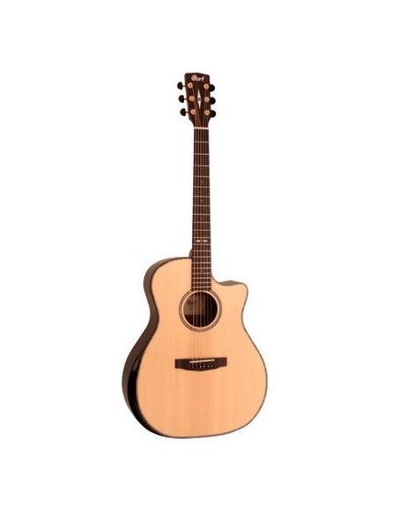 Guitarra electro-acústica con cutaway tipo Auditorium. Bevel cut o comfort cut para mayor comodidad al apoyar el brazo. Tapa sólida de abeto de sitka. Aros y fondo de Pau Ferro con fondo arqueado. Mástil de caoba. Diapasón de Ovangkol de 20 trastes. Escala 25,3 pulgadas. Clavijeros die casting. Puente de Ovangkol con pins de ébano. Previo L.R. Baggs EAS-VTC. Acabado natural brillante.