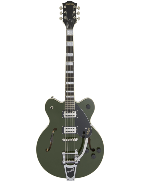 Revitalizando los mejores elementos del pasado, la G2622T Streamliner™ Center Block Double-Cut con Bigsby® irrumpe en la era de la música moderna con un sonido y un estilo potentes. Descarado y resistente a la retroalimentación, el elegante G2622T está diseñado para el guitarrista que exige más que lo mundano de un instrumento -más rendimiento, más estilo y, lo más importante, más volumen- al tiempo que conserva todo lo que espera de un Gretsch.