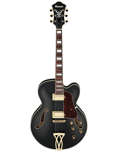Ibanez AF75G-BKF es una guitarra eléctrica de cuerpo hueco (hollow-body) perteneciente a la aclamada serie Artcore de Ibanez, conocida por su versatilidad para géneros como el jazz, blues, country y rock, ofreciendo un sonido rico y profundo. Características Principales
