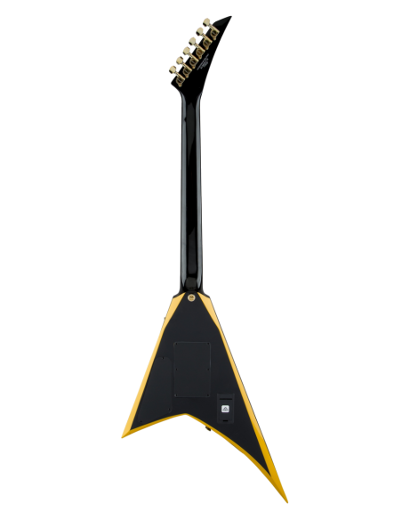 Cuenta con un cuerpo de álamo, mástil de arce con refuerzo de grafito y articulación en forma de cicatriz, diapasón de laurel con radio compuesto de 12"-16" y 24 trastes jumbo y clavijero Jackson de 6 puntas.