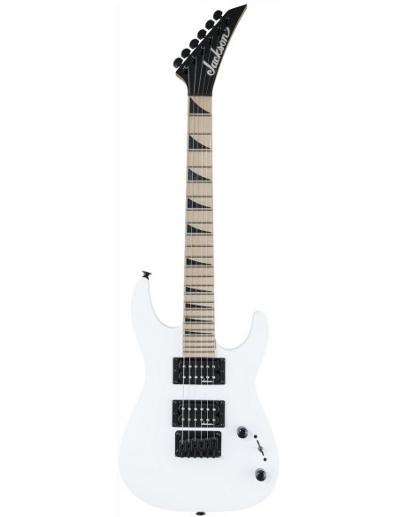 Con una longitud de escala de 2/3 (22,5"), la Dinky Minion JS1XM tiene cuerpo de álamo, mástil de arce atornillado con varillas de grafito y diapasón de arce de 12" de radio con 24 trastes jumbo e incrustaciones de aleta de tiburón. Un clavijero Jackson de 6 puntas en ángulo trasero permite una tensión distribuida uniformemente para reducir la fatiga al tocar, mientras que un talón esculpido allana el camino para facilitar el riffing en los trastes superiores.