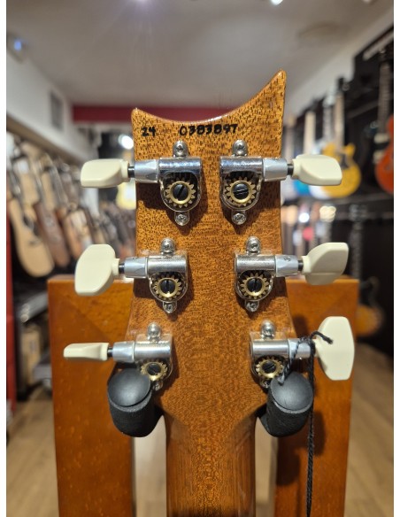 Especificaciones Adicionales y Novedades de 2024Las especificaciones adicionales incluyen una tapa de arce, fondo de caoba, mástil de caoba de 22 trastes y 25" de longitud de escala, diapasón de palisandro (rosewood), clavijas de bloqueo Phase III con botones Wing y el trémolo patentado PRS Gen III.