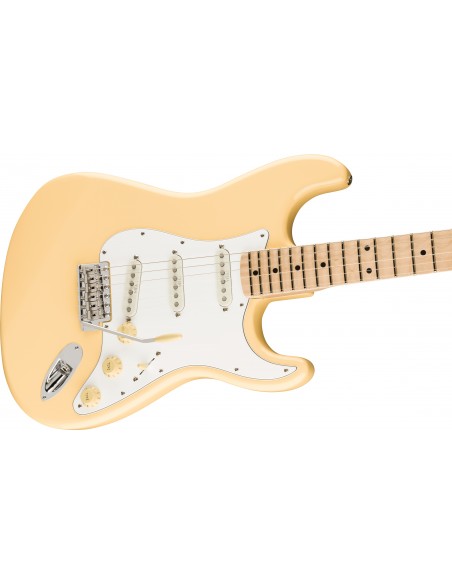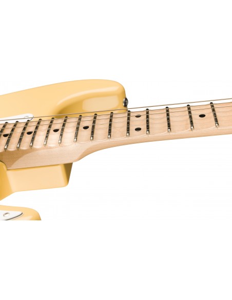 El cuerpo de aliso proporciona un tono equilibrado y con gran respuesta dinámica. El mástil de arce atornillado con perfil Modern “C” y alma tipo bullet ofrece estabilidad y una sensación familiar para los amantes de las Strat tradicionales.