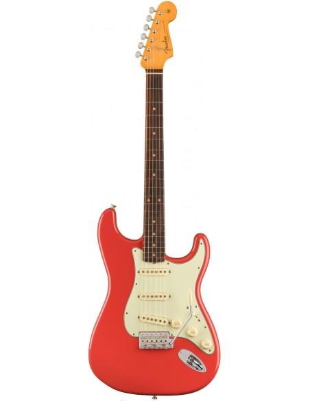 Durante finales de los años 50 y principios de los 60, la popularidad de los instrumentos musicales Fender floreció y, aunque la variedad de Fender se había ampliado para incluir muchos instrumentos nuevos y fantásticos, la Stratocaster® reinaba por encima de todo. Para 1961, la Stratocaster había adquirido una estética más refinada, con un Sunburst de 3 colores reformulado con un rojo más vibrante y un borde negro más audaz, rematado con un golpeador de 3 capas que acentuaba las curvas características de la Stratocaster.
