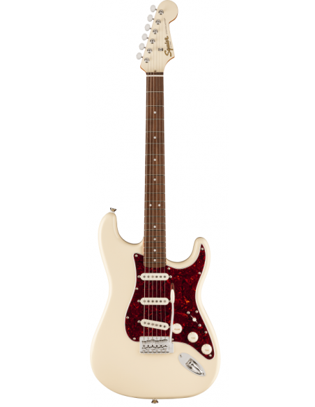 FSR 2025 Squier Classic Vibe '60s Stratocaster En Olympic White con golpeador Tortoise y pala matcheada