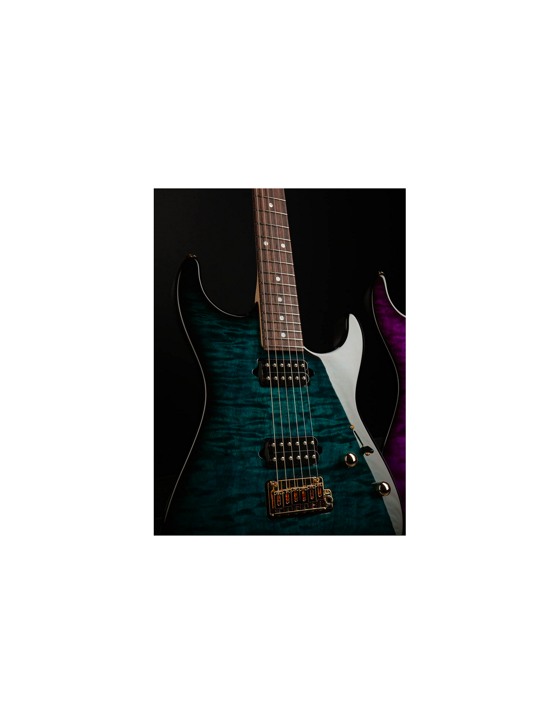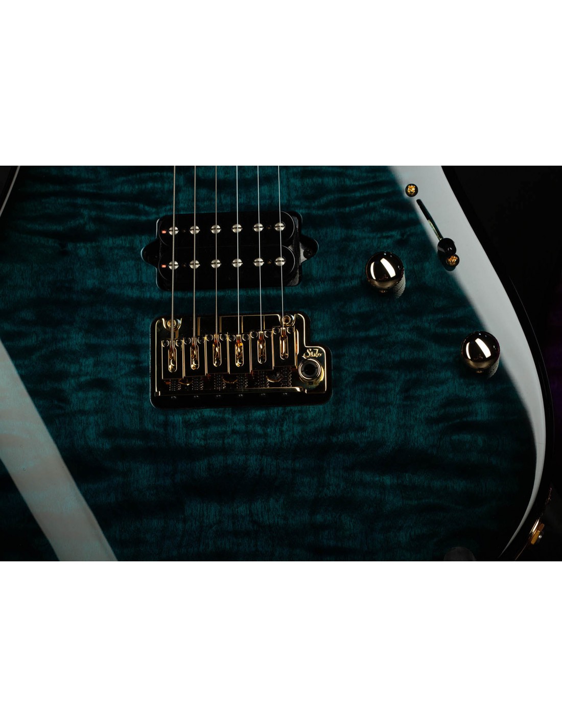 En el apartado sonoro, esta edición limitada monta un set de pastillas Suhr formado por una DSV en mástil y una DSH Plus en puente, ambas en elegante acabado negro. Su versatilidad tonal se gestiona mediante un selector de 5 posiciones, permitiendo desde limpios cristalinos hasta sonidos de alta ganancia con contundencia y definición. El usuario puede elegir entre el puente Suhr 2-Post para máxima estabilidad o un Gotoh Floyd para expresividad total. Las clavijas de bloqueo Suhr aseguran una afinación impecable y cambios de cuerda rápidos.