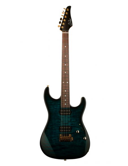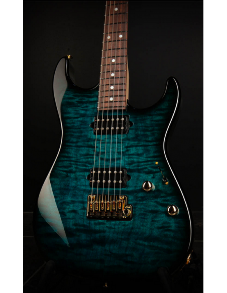La Suhr Standard Thin Burst Limited Edition Trans Teal es una edición exclusiva construida con la precisión artesanal que caracteriza a Suhr en Lake Elsinore, California. Este modelo presenta la icónica silueta Standard, fabricada con un cuerpo de roasted alder y una espectacular tapa de quilt maple, realzada por el acabado Thin Burst Trans Teal, que resalta la profundidad y movimiento de la madera. Su diseño sin binding crea un contorno limpio y moderno que aporta una estética elegante y contemporánea.