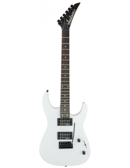 Rápidas, letales y asequibles, las guitarras Jackson JS dan un salto hacia adelante, haciendo más fácil conseguir el tono clásico Jackson, su aspecto y facilidad de ejecución. Cuenta con un cuerpo de álamo, mástil de arce atornillado con refuerzo de grafito para mayor estabilidad y un diapasón de amaranto de 12" de radio con 24 trastes jumbo e incrustaciones de puntos blancos. El radio plano facilita los acordes, es ideal para tocar rítmicamente y hacer bendings. Dos pastillas Jackson humbucking emiten un tono claro con mucha fuerza, y se pueden configurar con un interruptor de tres vías y controles individuales de volumen y tono.