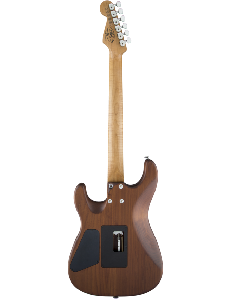 Con una escala de 25,5", la Guthrie Govan USA Signature ofrece un cuerpo de tilo caramelizado San Dimas® con tapa de arce flameado con un fino acabado de uretano satinado y un talón contorneado (sin placa de mástil) para facilitar el acceso a la parte final del diapasón. El mástil de arce flameado atornillado tiene un tratamiento térmico y de secado "caramelizado" junto con un refuerzo de grafito, un acabado de uretano frotado a mano en la parte posterior del mástil y una práctica rueda de ajuste de la varilla del alma montada en el talón. El diapasón de radio compuesto de 12"-16" y 24 trastes extra jumbo de acero inoxidable e incrustaciones especiales de arce con bordes de ébano, así como puntos laterales Luminlay® que emiten luz para escenarios oscuros.