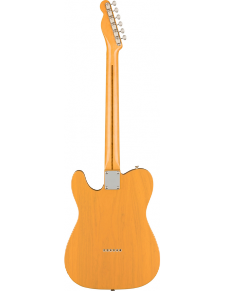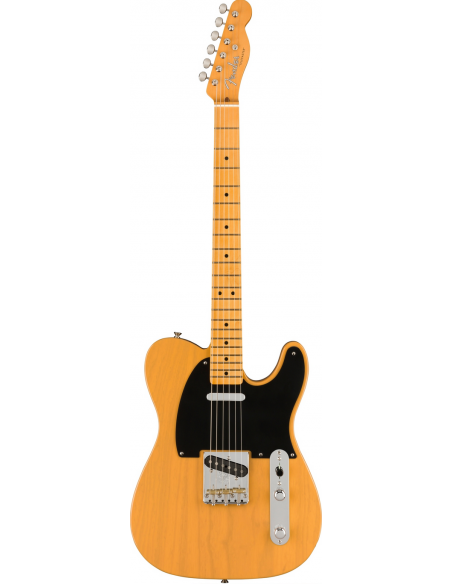 La American Vintage II 1951 Telecaster cuenta con un cuerpo de fresno acabado en Butterscotch Blonde para capturar el tono y el aspecto de la original. El sustancial mástil de arce de roca dura en forma de "U" del '51 se toca como un sueño con un diapasón de radio de 7.25 "y trastes altos vintage. Característica de la producción en 1951, el espacio entre los puntos de la cara del traste 12 es estrecho y el único sujetador de cabeza Phillips de la guitarra está en la tuerca del alma. El triple puente de sillín de latón, el clavijero“Fender Deluxe” en línea y las pastillas Pure Vintage '51 Telecaster brindan un toque clásico y un auténtico estilo Fender.