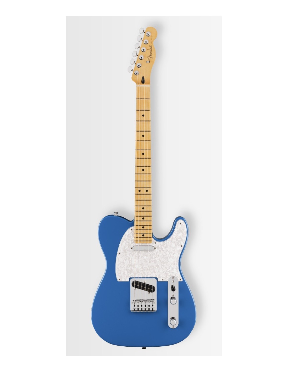 El acabado Elbow Blue aporta un toque distintivo y actual, acompañado de un mástil de arce con diapasón de radio moderno que facilita la ejecución en todo el rango. El puente Tele de seis selletas mejora la afinación y el ajuste, manteniendo el carácter brillante y articulado que define a este modelo.