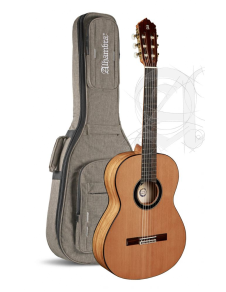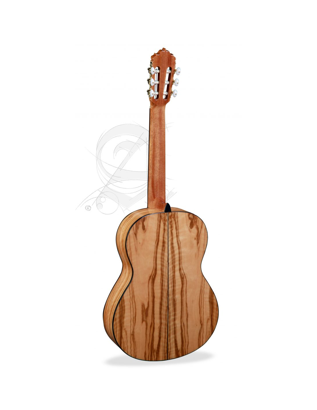 TAPA/CALIDAD: Cedro Macizo / “AA”AROS Y FONDO: Ébano blancoMANGO: Samanguila. Reforzado con ÉbanoDIAPASÓN: ÉbanoCLAVIJEROS: Golden ACUERDAS: D’AddarioAcabado brillo. Varetaje Classical 5