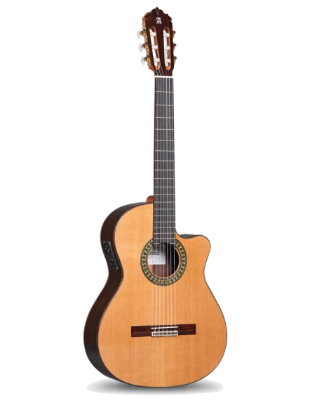 Construida a mano la Alhambra 5P CW E2 es un instrumento con agudos brillantes y agradables que armonizan con bajos sólidos y completos. Es un instrumento bien equilibrado.