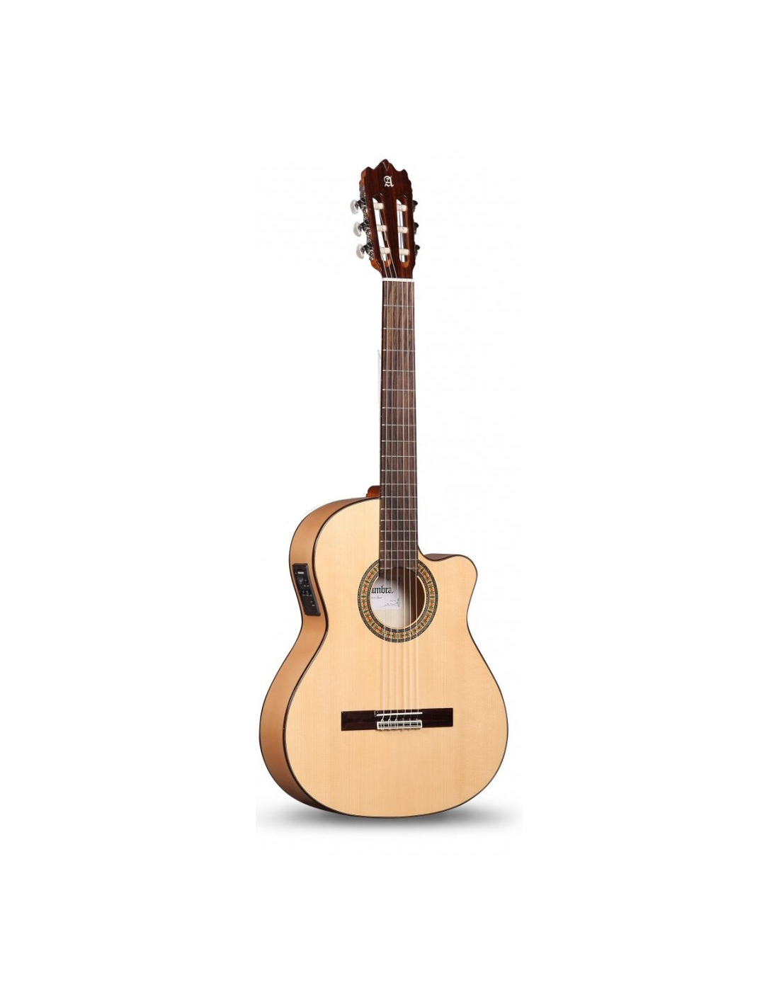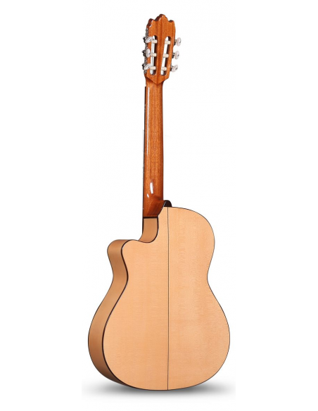 Una de las guitarras flamencas más vendidas, en versión electrificada, con sistema Fishman e1 (piezo) y con recorte (cutaway) para acceder mejor a los trastes más agudos. Una gran herramienta de escenario.