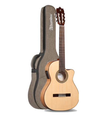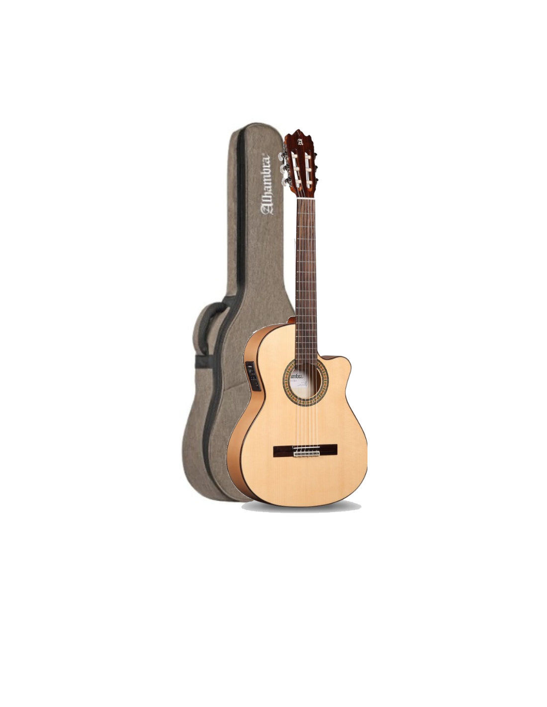 Una de las guitarras flamencas más vendidas, en versión electrificada, con sistema Fishman e1 (piezo) y con recorte (cutaway) para acceder mejor a los trastes más agudos. Una gran herramienta de escenario.