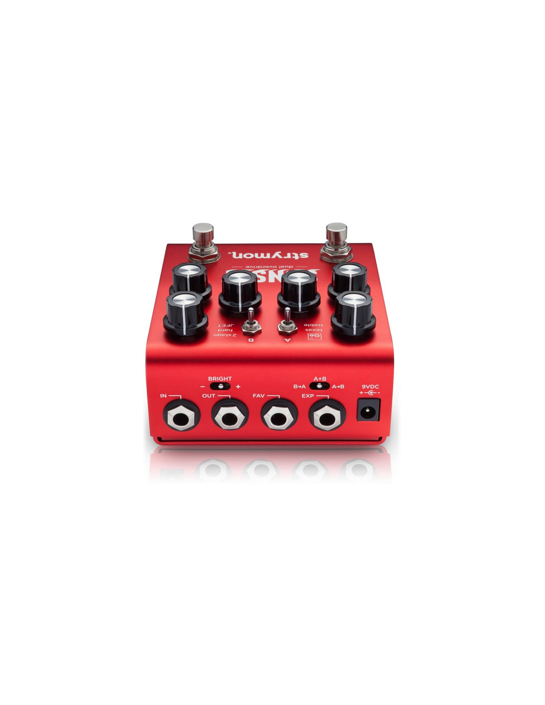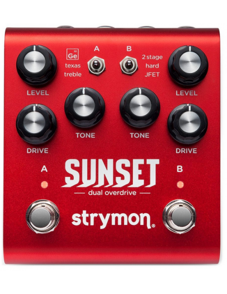 6 tipos de overdrives encontradas en los modelos más icónicos dentro de un pedal con 2 canales. Cada uno de ellos actúa de manera independiente y pueden funcionar los dos a la vez. Controles Drive y Tone por separado.
