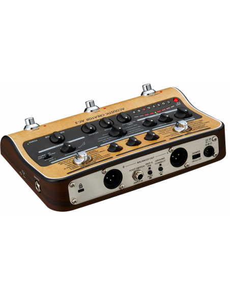El AC-3 Acoustic Creator es una caja directa mejorada con funciones DI esenciales que le ayudan a conseguir un tono excelente sin importar donde esté tocando. El AC-3 está equipado con un generador de efectos, salidas estéreo y un compresor. Con estas características además del mismo previo de alta calidad y la EQ de 3 bandas del AC-2, el AC-3 es una caja de herramientas acústicas todo-en-uno que va genial para actuaciones en directo y también para el estudio.