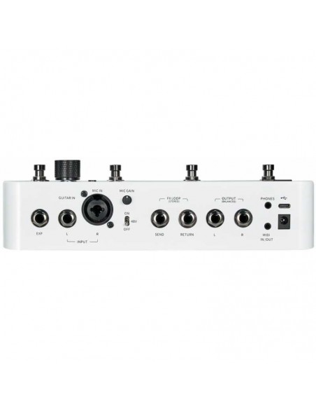 Conectividad profesional: Incluye una interfaz de audio USB 2 In/2 Out, entradas para instrumento y micrófono, salidas balanceadas y un bucle de efectos estéreo.