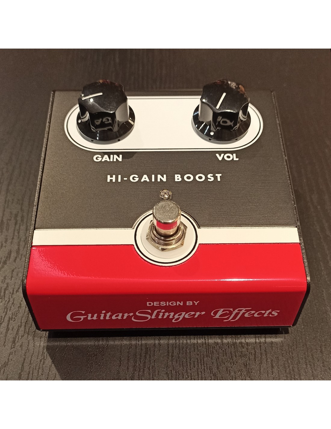 Pedal Jet City Hi-Gain Boost de efectos para guitarra creado por Guitar Slinger Effects Diseñado para potenciar tu sonido. Potenciador analógico de ganancia, para músicos que buscan saturación intensa en sus solos más que sonidos limpios cristalinos. - Pedal analógico de alta ganancia que lleva tu ampli a una saturación rica y poderosa - Aporta sustain, compresión y cuerpo armónico, perfecto para solos y líneas melódicas. - Diseño en color negro y rojo.