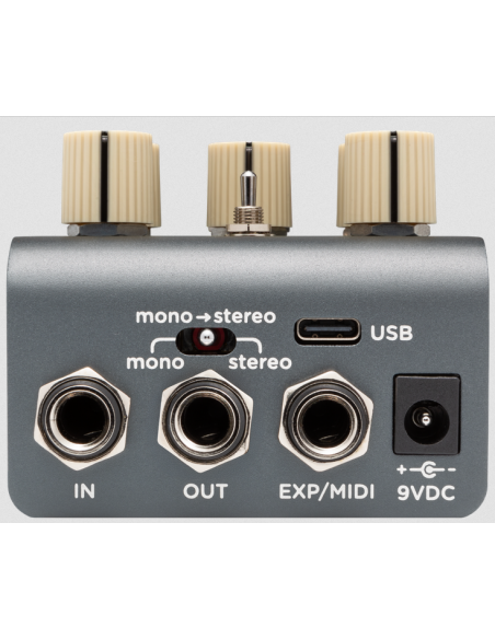 Controles: Controles sencillos (straightforward) y capacidad para conectar un pedal de expresión.