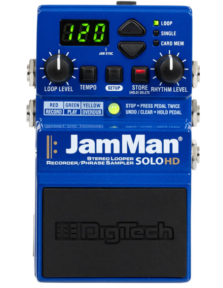 El JamMan Solo HD dispone de conectividad USB para sincronizarse con el software gratuito JamManager HD de DigiTech. El JamManager HD organiza y guarda los loops en el ordenador (PC) y permite crear rápidamente JamLists. El JamMan Solo HD es el looper estéreo/sampler de frases perfecto para practicar, componer y tocar en directo.