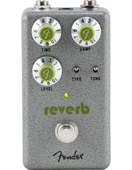 Fender Hammertone™ Reverb ofrece tres efectos de reverberación clásicos: Hall, Room y Plate, en un pedal compacto que se integrará a la perfección en tu equipo. El potente control de amortiguación y el interruptor de tono ofrecen una flexibilidad suprema, mientras que los tonos de reverberación integrados diseñados por Fender son perfectos para ambientes sutiles a extremos.