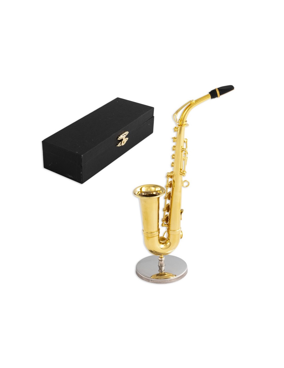 Trombón de varas metálico decorativo miniatura. Con soporte metálico y estuche.