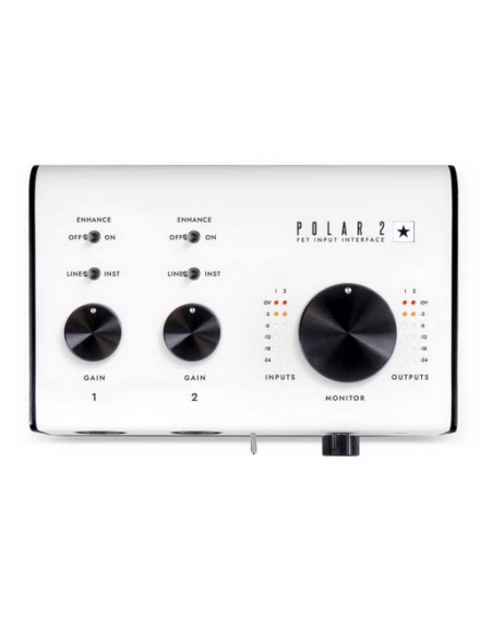 POLAR 2 es un interfaz de audio USB de 2 canales construida por guitarristas y diseñada para guitarristas. Cuenta con 2 canales de entrada FET para instrumento, línea y micrófono, un amplificador de auriculares , alimentación phantom de +48V para micrófonos de condensador, salidas balanceadas para monitorización profesional, medidores visuales de nivel y el interruptor exclusivo de Blackstar 'Enhance'.