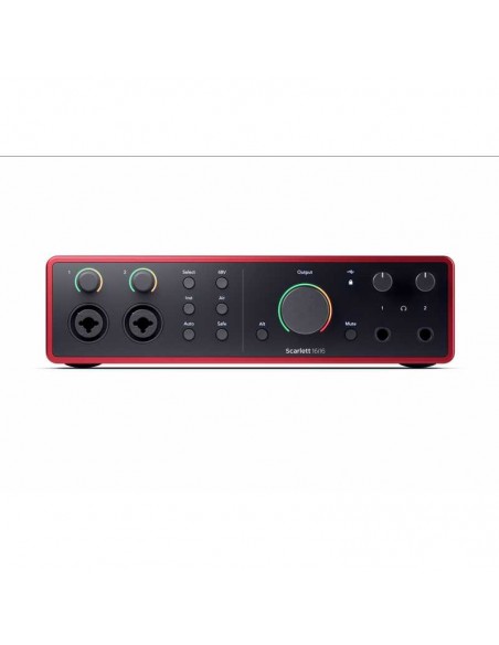 16 entradas y 16 salidas, dos preamplificadores de micrófono y E/S MIDI, para instrumentos y de línea.