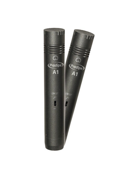 Par de micrófonos unidireccionales de condensador.