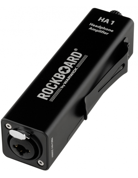 El amplificador de auriculares de monitorización en oído HA 1 es el compañero ideal para cantantes, teclistas, baterías, guitarristas, bajistas y otros músicos. Establece la conexión entre la señal de monitorización de la mesa de mezclas, el instrumento o el amplificador y sus propios auriculares. Su funcionamiento es un juego de niños: basta con activar el dispositivo con el control de volumen y ajustar el volumen deseado para la señal de los auriculares. Con el interruptor de fuente estéreo/mono, fácilmente accesible en el dispositivo, el HA 1 puede ajustarse a la señal de entrada respectiva. La carcasa de aluminio, extremadamente compacta y ligera, está provista de un clip para sujetarla al cinturón o a la cintura. El HA 1 dispone de un LED de estado que cambia de color en función del voltaje de la batería disponible. Dos pilas AAA proporcionan hasta 12 horas de alimentación y las pilas pueden cambiarse en un abrir y cerrar de ojos gracias al práctico compartimento para pilas con cierre de clip, accesible desde el exterior. El HA 1 está equipado con una toma combinada para utilizar con cables jack estéreo (6,35 mm) y XLR para la señal de entrada y una salida de auriculares jack estéreo de 3,5 mm. En el escenario, en la sala de ensayo o en casa, el amplificador de auriculares de monitorización in-ear RockBoard HA 1 ofrece siempre un control total sobre la señal de monitorización. En clubes pequeños, la monitorización in-ear mejora la acústica de la sala, y cuando la banda sube el volumen, la señal se ajusta rápidamente y se puede disfrutar del sonido en cualquier momento.